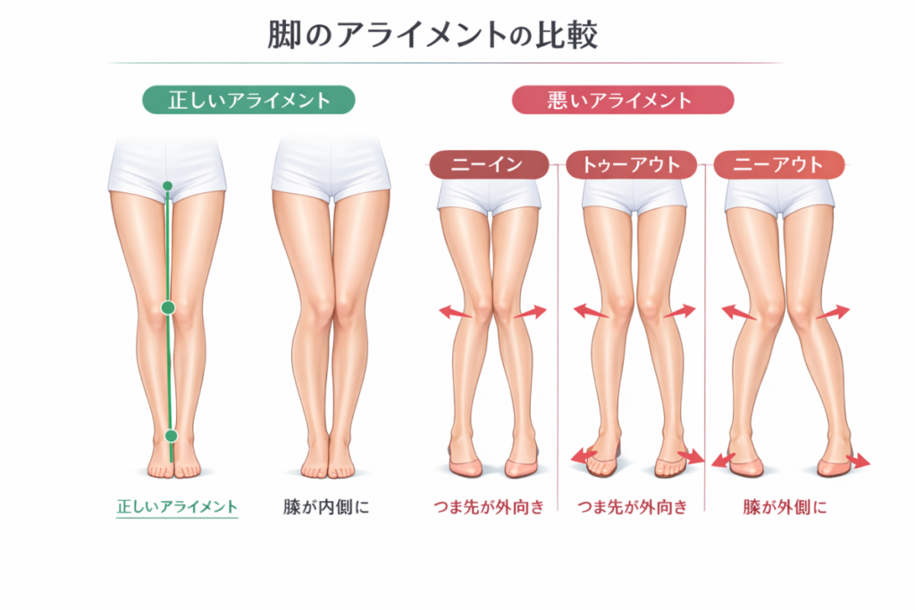 👉 脚のライン(アライメント)の崩れを示しています。