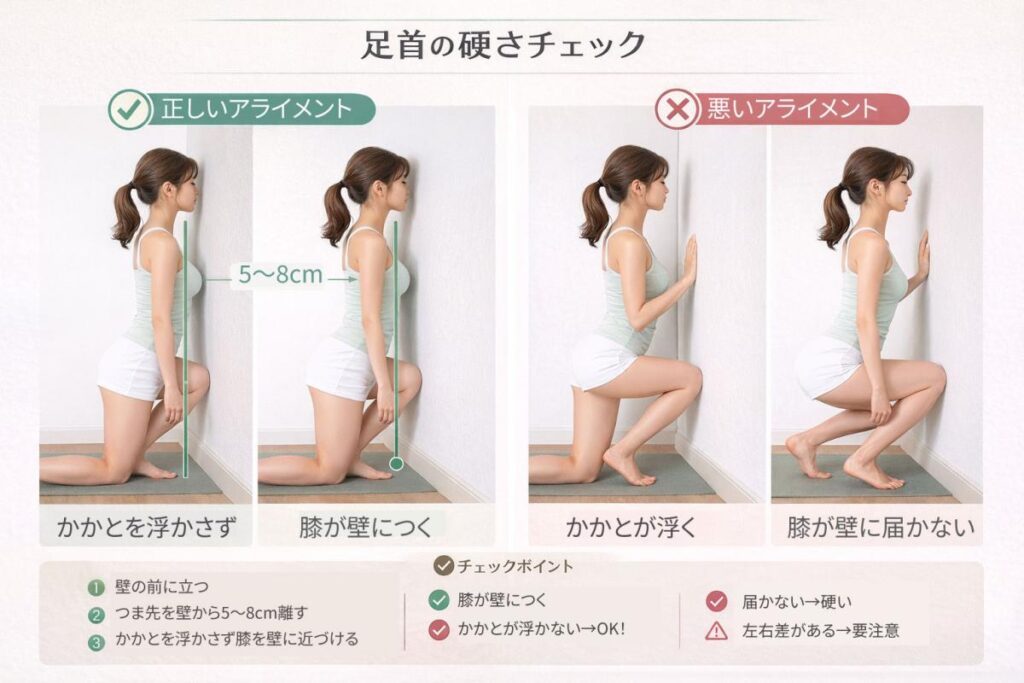 ✔ かかとが浮く → 足首が硬い