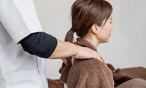 肩こりの改善には、まずは正しい骨格配列に戻すことが重要です。当店では姿勢や歩き方の改善もサポート。日常で行えるセルフケアの方法も併せて指導します。